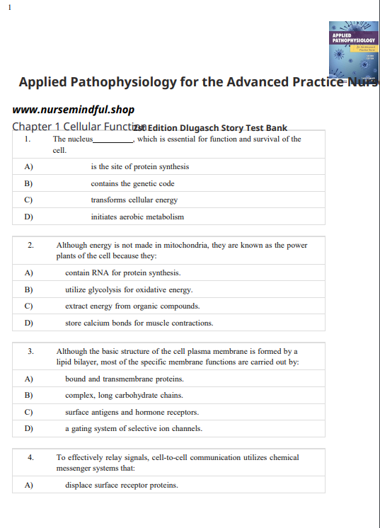 test bank of Applied Pathophysiology for the Advanced Practice Nurse 2nd Edition Bu Lucie PDF